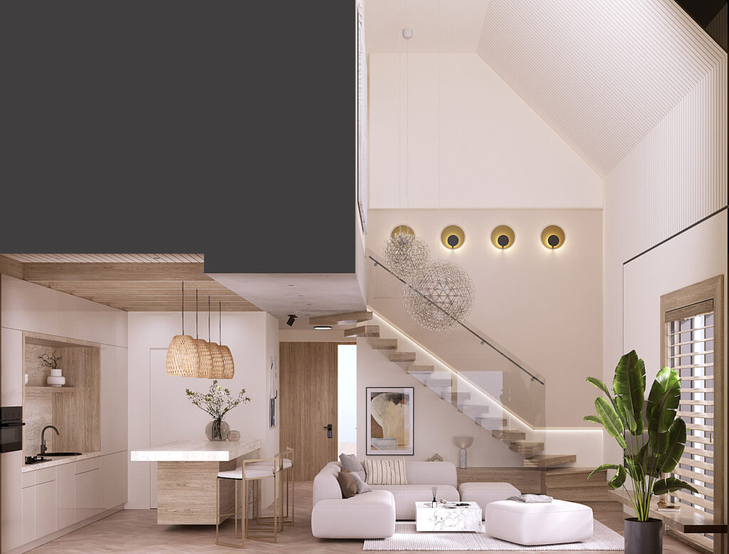 Each home offers 118 m² of elegant space with four rooms, a carport, storage, and generous outdoor areas — including a sunroof terrace. With two bathrooms and a private sauna, comfort and relaxation are built into everyday life.